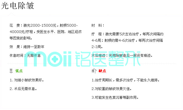 皱纹是女人的天敌,很多人认为想要皮肤看起来光滑细腻好的办法就是化妆,但是,擦上粉妆之后只能改变肤色,却掩饰不了皱纹的痕迹,所以想要对付皱纹还要另寻他法,那么,目前至有效的除皱方法有哪些呢?它们的花费、效果和优缺点又是什么呢?下面吉林铭医整形为大家详细解释一下的去皱纹好的四大方法: