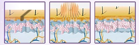 通过激光的聚焦光斑能量照射在皮肤上,深入皮肤并且深层的产生高热量作用于脸上的痘印,准确地控制去除痘印组织的深度。痘印部分被去除后,皮肤组织会再生更新,以达到换肤的目标。