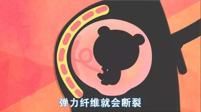 在怀孕期间,孕妈妈的皮肤弹性下降,而长大的肚子使皮肤拉力不断增加,皮肤的弹力纤维就会断裂,出现紫色或红色的条纹,时间久了会变成白色,这就是“妊娠纹”了。