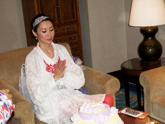 吉林铭医29周年答谢晚宴现场,郭可盈除了献唱歌曲之外,期间和fans一起庆生, 并亲切的满足了粉丝们合影的愿望。