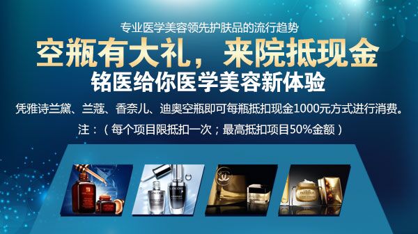脱毛一个部位8折,两个部位7.5折,三个部位7折。深蓝祛皱体验价2000元,彩光嫩肤补水体验价888元,彩光疗程特价2160元。K8细胞修复特价5800元。韩式水光嫩肤一个疗程赠送快速综合水光快速。菲蜜丽快速2万元,黄金微针特价18800。除此之外空瓶还能抵现。