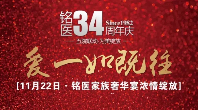 亲爱的家人们,今年我34岁 温馨晚宴,只想邀您一醉方休 共同见证铭医34载奢华蝶变 将时光的馈赠从容签收 亲爱的家人们,11月22日, 我们为您真心等候, 铭医34周年家庭晚宴, 我们期待与您再次深情聚首! 铭医家族34岁生日大趴, 从眼球到心灵的震撼, 狂撒百万,打造奢华盛宴, 有爱,任性! 34年,对