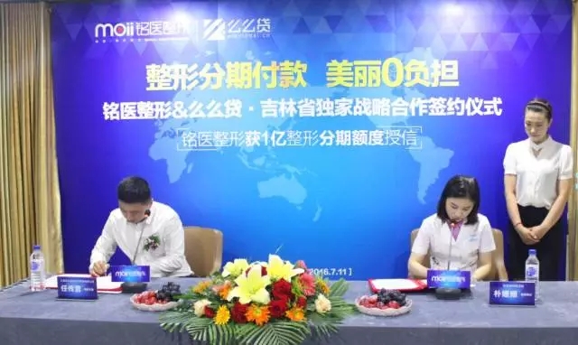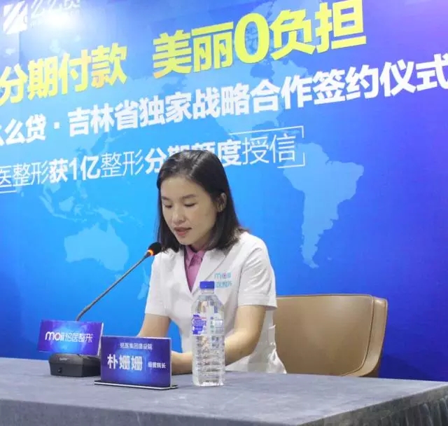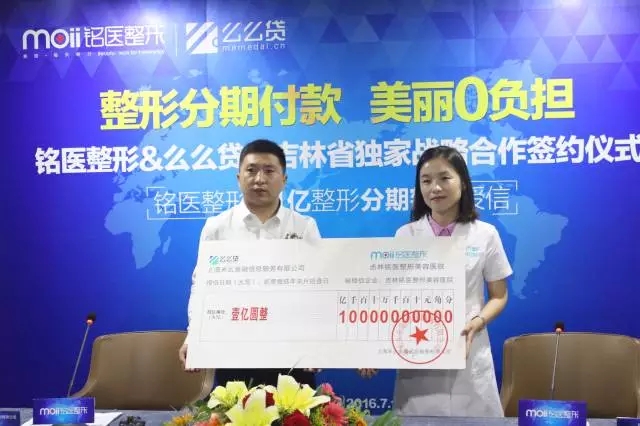 仪式上吉林铭医整形美容医院经营院长朴姗姗接受么么贷1亿整形分期额度授信。双方就医疗美容分期支付业务达成长期合作。