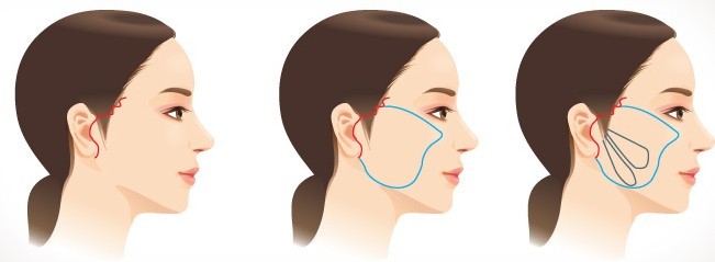 1、眶外侧的肌肉和皮肤被提紧和展平;