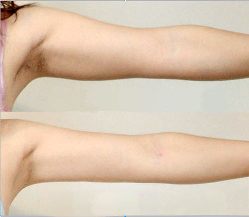上臂部的脂肪多蓄积在上臂的后侧,肥胖的肩臂部脂肪一直可以延续到肘关节部。手臂吸脂减肥的方法是在腋窝里面开一个小口,将上臂部后侧及肩部的脂肪分层、均匀地抽吸出来。手臂吸脂是在局部麻醉下进行,术后包扎两天,只需换药快速。当您穿上无袖衫或太阳裙时,轻盈的双臂定会为您增光添彩。